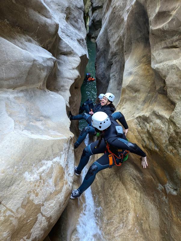 The canyoning takes place between two imposing walls or long corridors interspersed with several ridges that you will swim past – there will also be a sequence of waterfalls and swimming across 3km on a gradient of 180m.